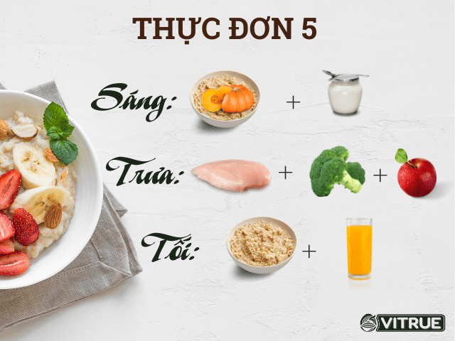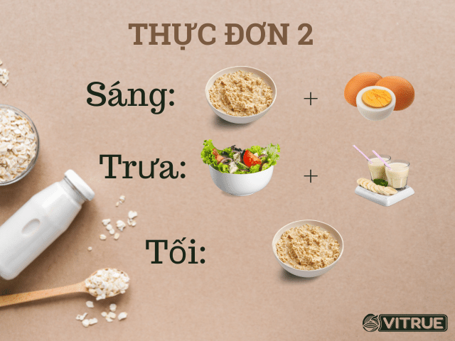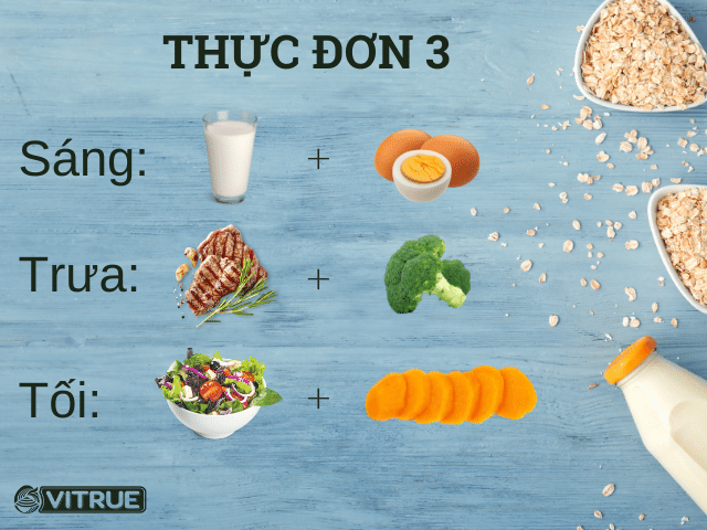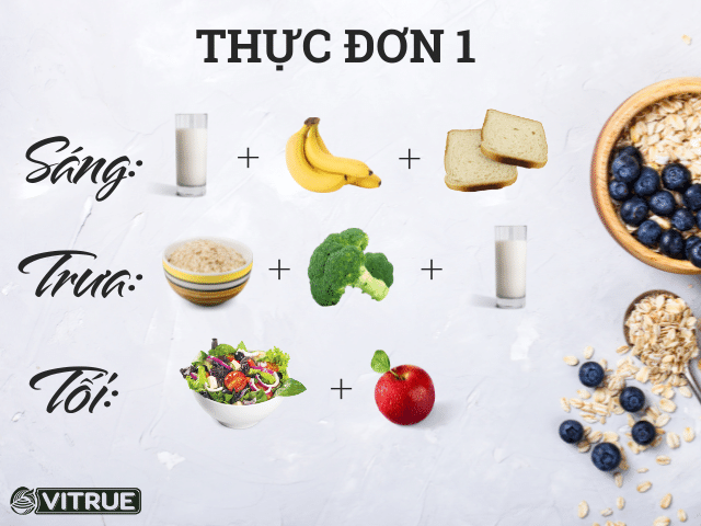 Trưa: 1 chén gạo lứt và rau củ luộc với 1 ly sữa yến mạch